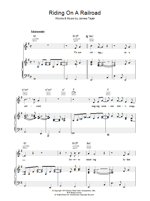 Download or print James Taylor Riding On A Railroad sheet music, chords and digital score arranged for Piano, Vocal & Guitar Chords. This Rock score includes 5 page(s).
