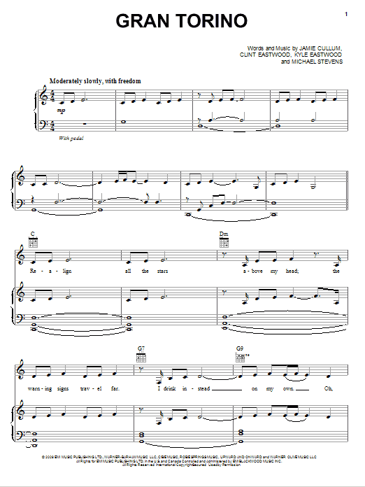 Download or print Jamie Cullum Gran Torino sheet music, chords and digital score arranged for Piano, Vocal & Guitar Chords (Right-Hand Melody). This Film/TV score includes 7 page(s).