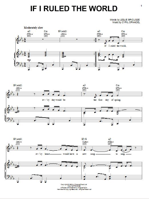 Download or print Jamie Cullum If I Ruled The World sheet music, chords and digital score arranged for Piano, Vocal & Guitar Chords (Right-Hand Melody). This Jazz score includes 7 page(s).