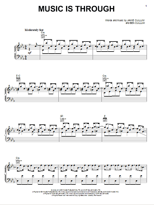 Download or print Jamie Cullum Music Is Through sheet music, chords and digital score arranged for Piano, Vocal & Guitar Chords (Right-Hand Melody). This Jazz score includes 11 page(s).