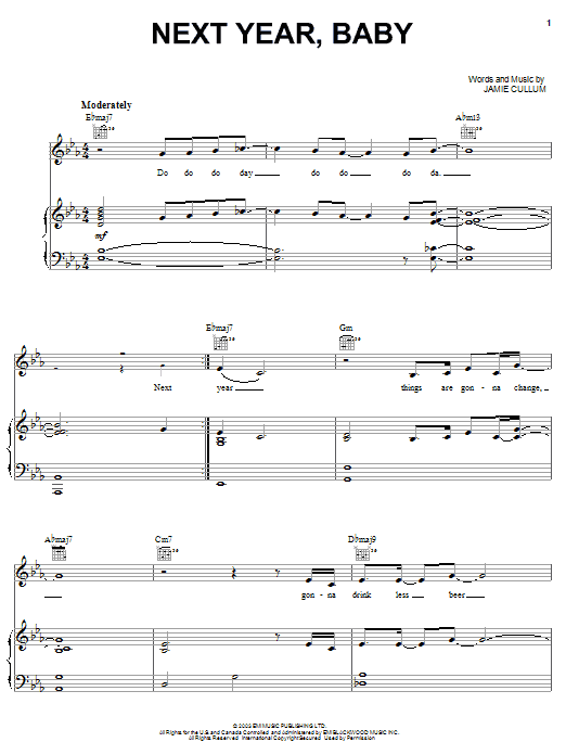Download or print Jamie Cullum Next Year, Baby sheet music, chords and digital score arranged for Piano, Vocal & Guitar Chords (Right-Hand Melody). This Pop score includes 11 page(s).