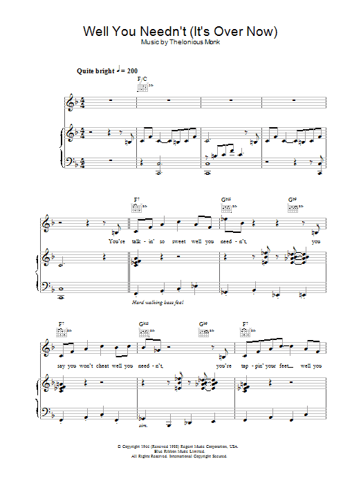 Quick facts Well You Needn't (It's Over Now) about digital sheet music