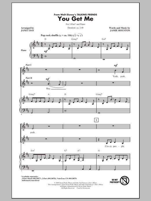 Download or print Janet Day You Get Me sheet music, chords and digital score arranged for 3-Part Mixed Choir. This Concert score includes 3 page(s).