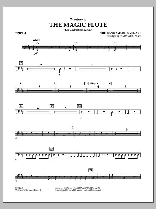 Download or print Jamin Hoffman Overture to The Magic Flute - Timpani sheet music, chords and digital score arranged for Orchestra. This Classical score includes 2 page(s).