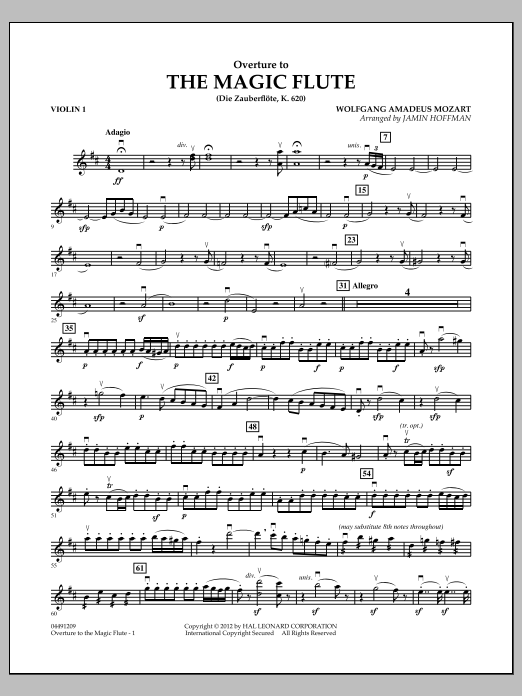 Download or print Jamin Hoffman Overture to The Magic Flute - Violin 1 sheet music, chords and digital score arranged for Orchestra. This Classical score includes 2 page(s).