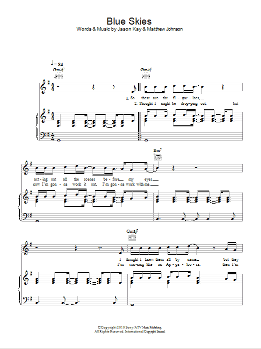 Download or print Jamiroquai Blue Skies sheet music, chords and digital score arranged for Piano, Vocal & Guitar Chords. This Pop score includes 8 page(s).