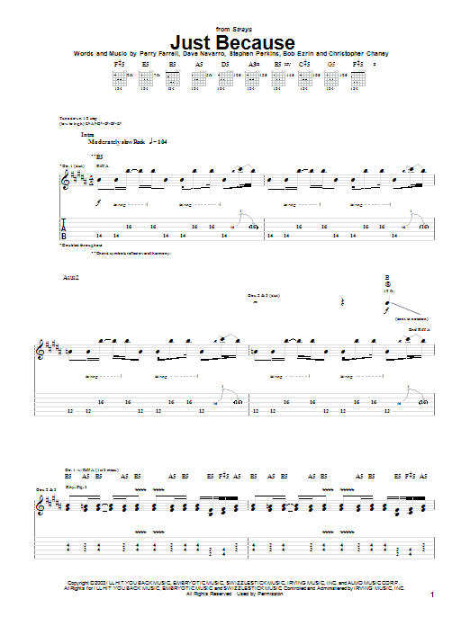 Download or print Jane's Addiction Just Because sheet music, chords and digital score arranged for Guitar Chords/Lyrics. This Rock score includes 3 page(s).