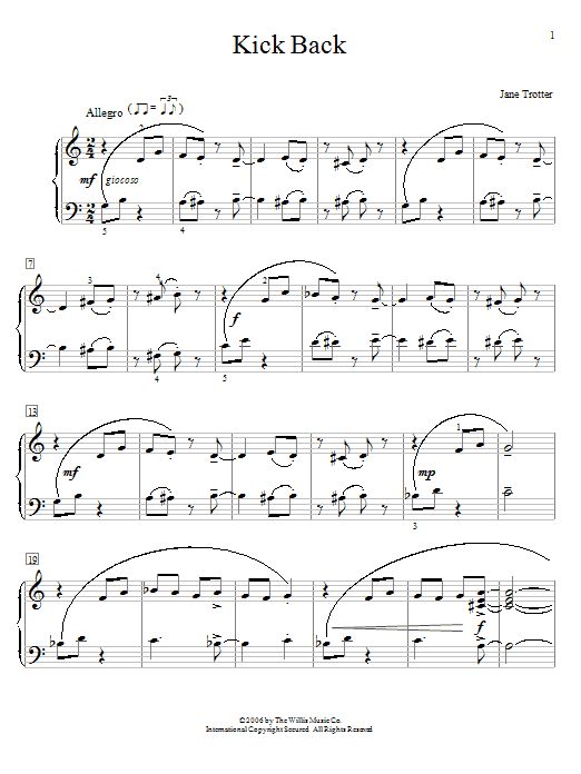 Download or print Jane Trotter Kick Back sheet music, chords and digital score arranged for Educational Piano. This Jazz score includes 2 page(s).
