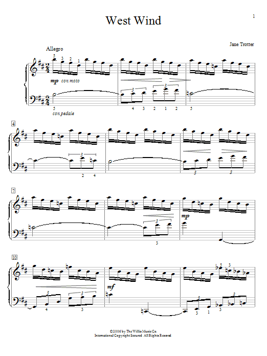 Download or print Jane Trotter West Wind sheet music, chords and digital score arranged for Educational Piano. This Pop score includes 3 page(s).