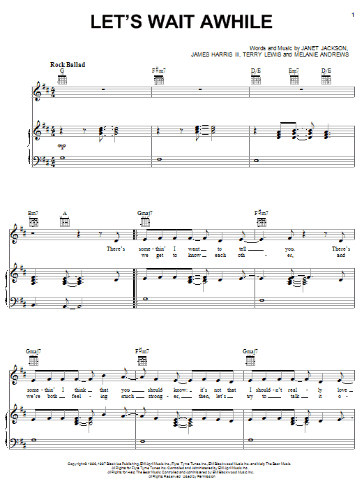 Download or print Janet Jackson Let's Wait Awhile sheet music, chords and digital score arranged for Piano, Vocal & Guitar Chords (Right-Hand Melody). This Pop score includes 7 page(s).