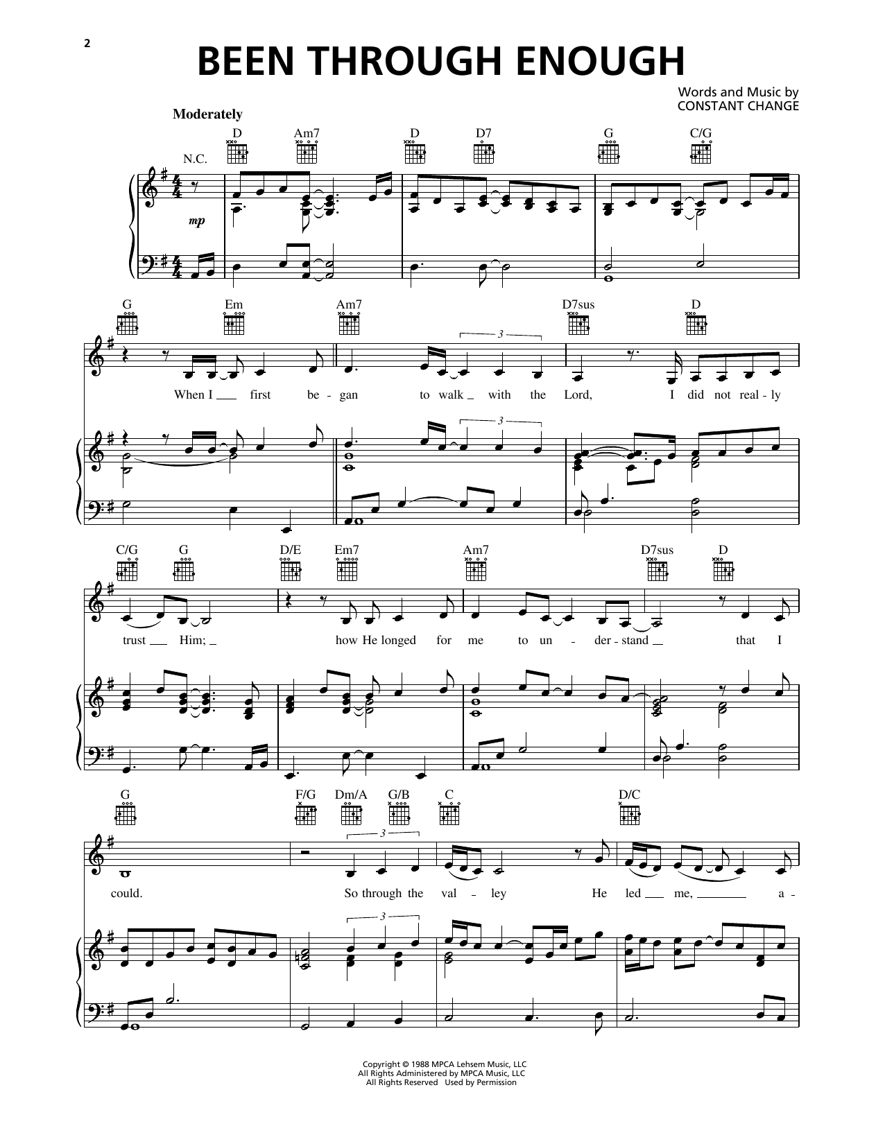 Download or print Janet Paschal Been Through Enough sheet music, chords and digital score arranged for Piano, Vocal & Guitar Chords (Right-Hand Melody). This Gospel score includes 5 page(s).