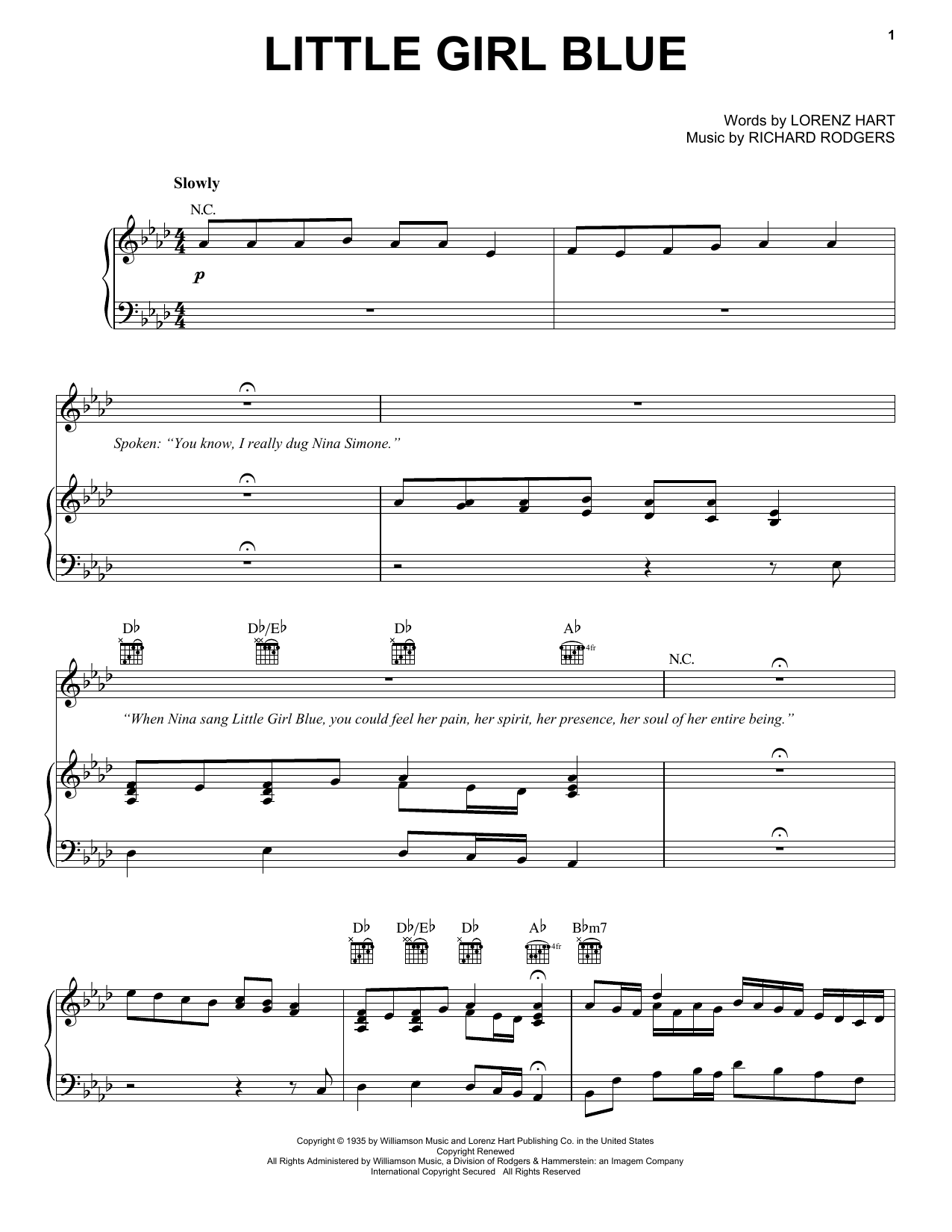 Download or print Janis Joplin Little Girl Blue (from the musical A Night With Janis Joplin) sheet music, chords and digital score arranged for Piano, Vocal & Guitar Chords (Right-Hand Melody). This Pop score includes 10 page(s).