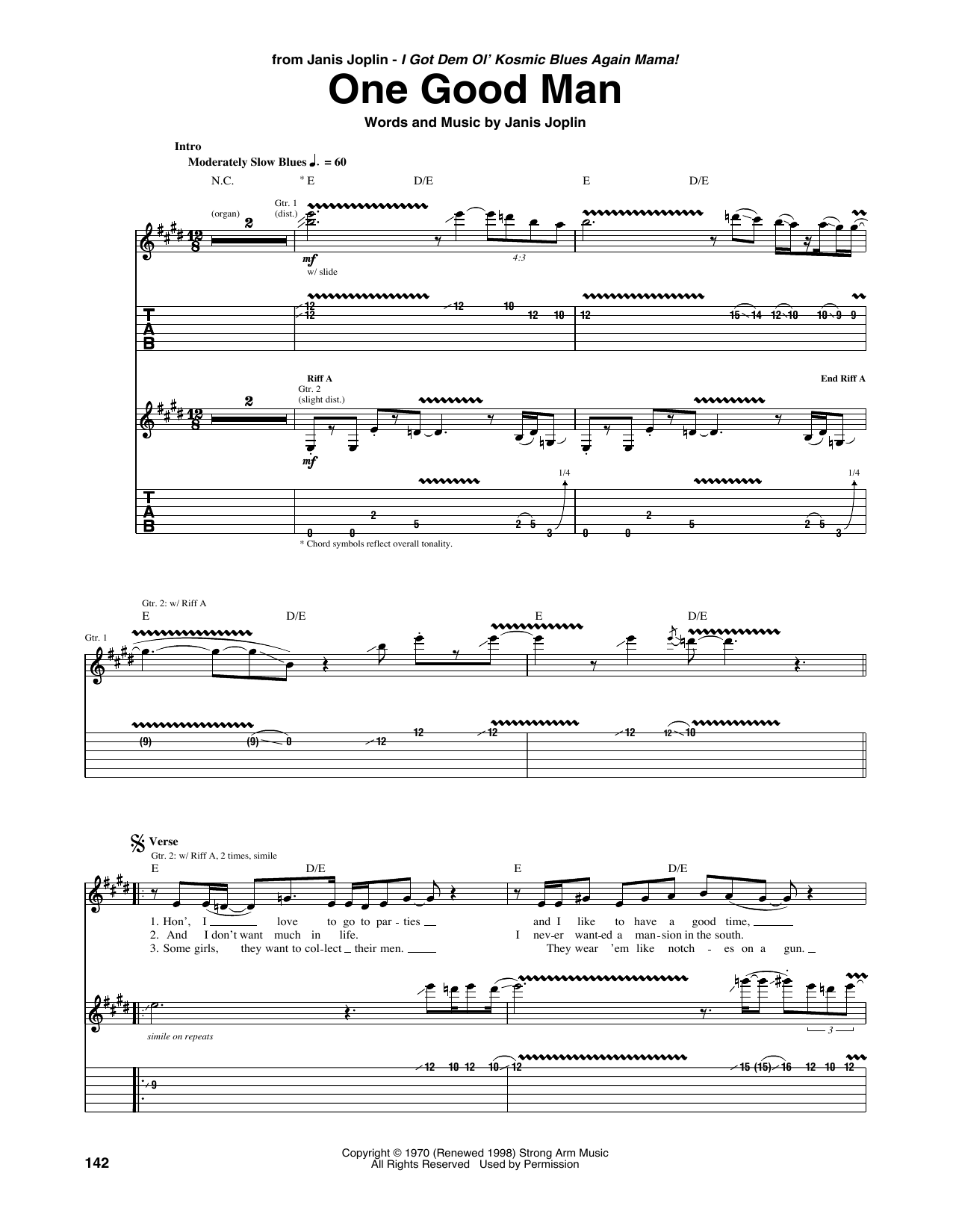 Download or print Janis Joplin One Good Man sheet music, chords and digital score arranged for Guitar Tab. This Blues score includes 5 page(s).