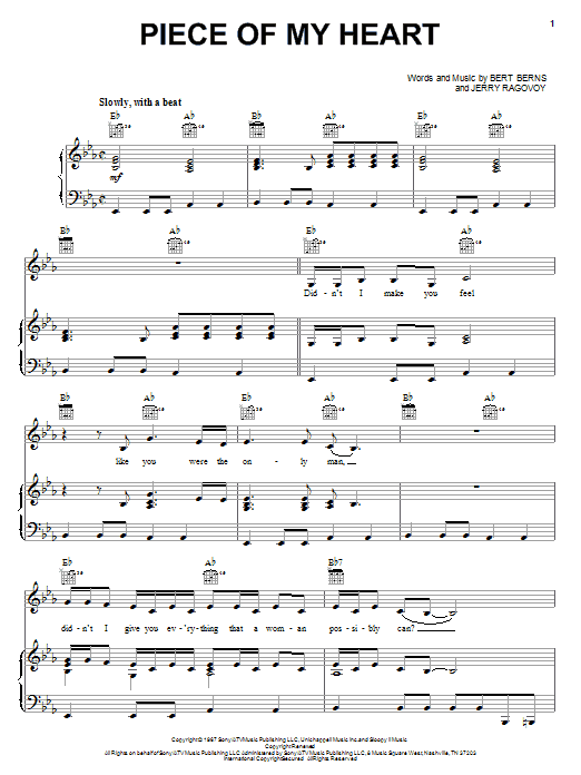 Quick facts Piece Of My Heart about digital sheet music