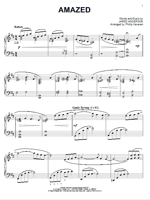 Download or print Jared Anderson Amazed [Jazz version] (arr. Phillip Keveren) sheet music, chords and digital score arranged for Piano Solo. This Christian score includes 2 page(s).