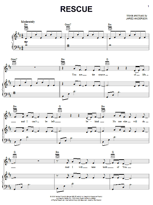 Download or print Jared Anderson Rescue sheet music, chords and digital score arranged for Piano, Vocal & Guitar Chords (Right-Hand Melody). This Christian score includes 7 page(s).