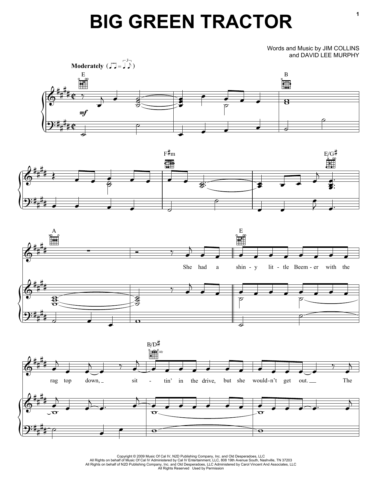 Download or print Jason Aldean Big Green Tractor sheet music, chords and digital score arranged for Piano, Vocal & Guitar Chords (Right-Hand Melody). This Country score includes 7 page(s).
