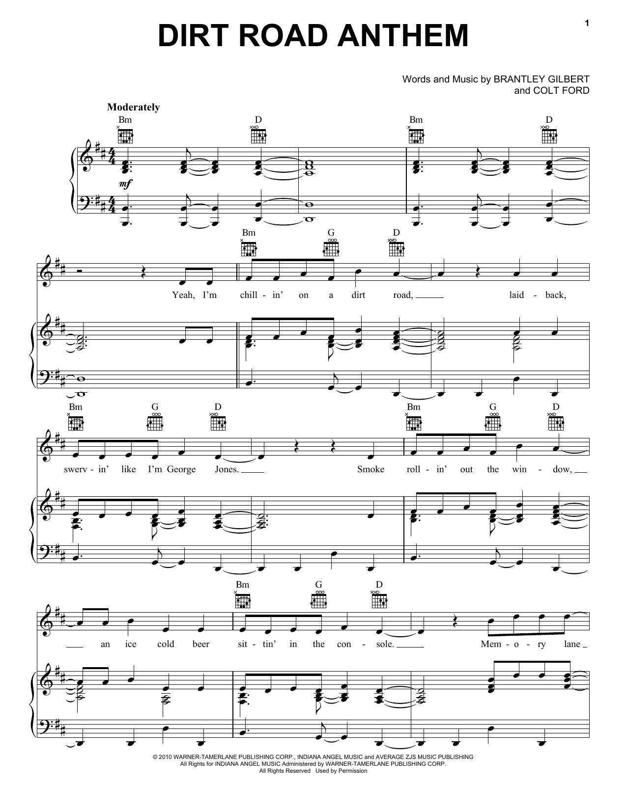 Download or print Jason Aldean Dirt Road Anthem sheet music, chords and digital score arranged for Piano, Vocal & Guitar Chords (Right-Hand Melody). This Pop score includes 8 page(s).