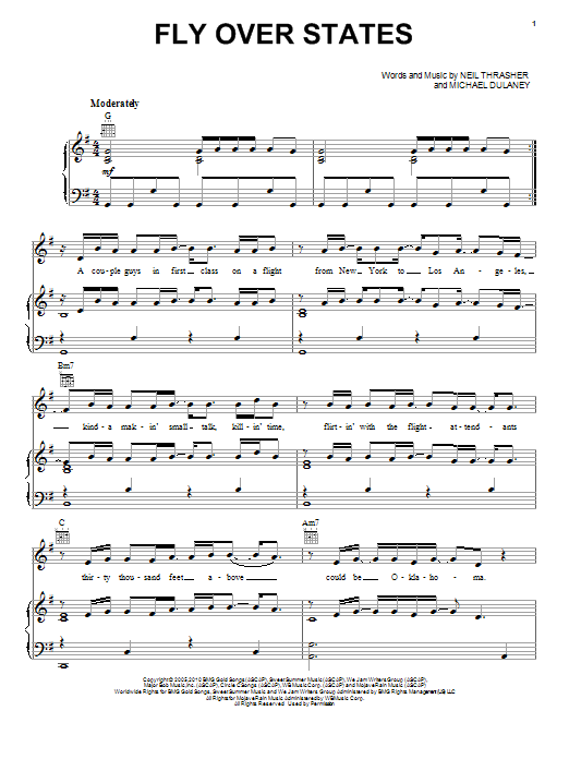 Download or print Jason Aldean Fly Over States sheet music, chords and digital score arranged for Piano, Vocal & Guitar Chords (Right-Hand Melody). This Country score includes 7 page(s).