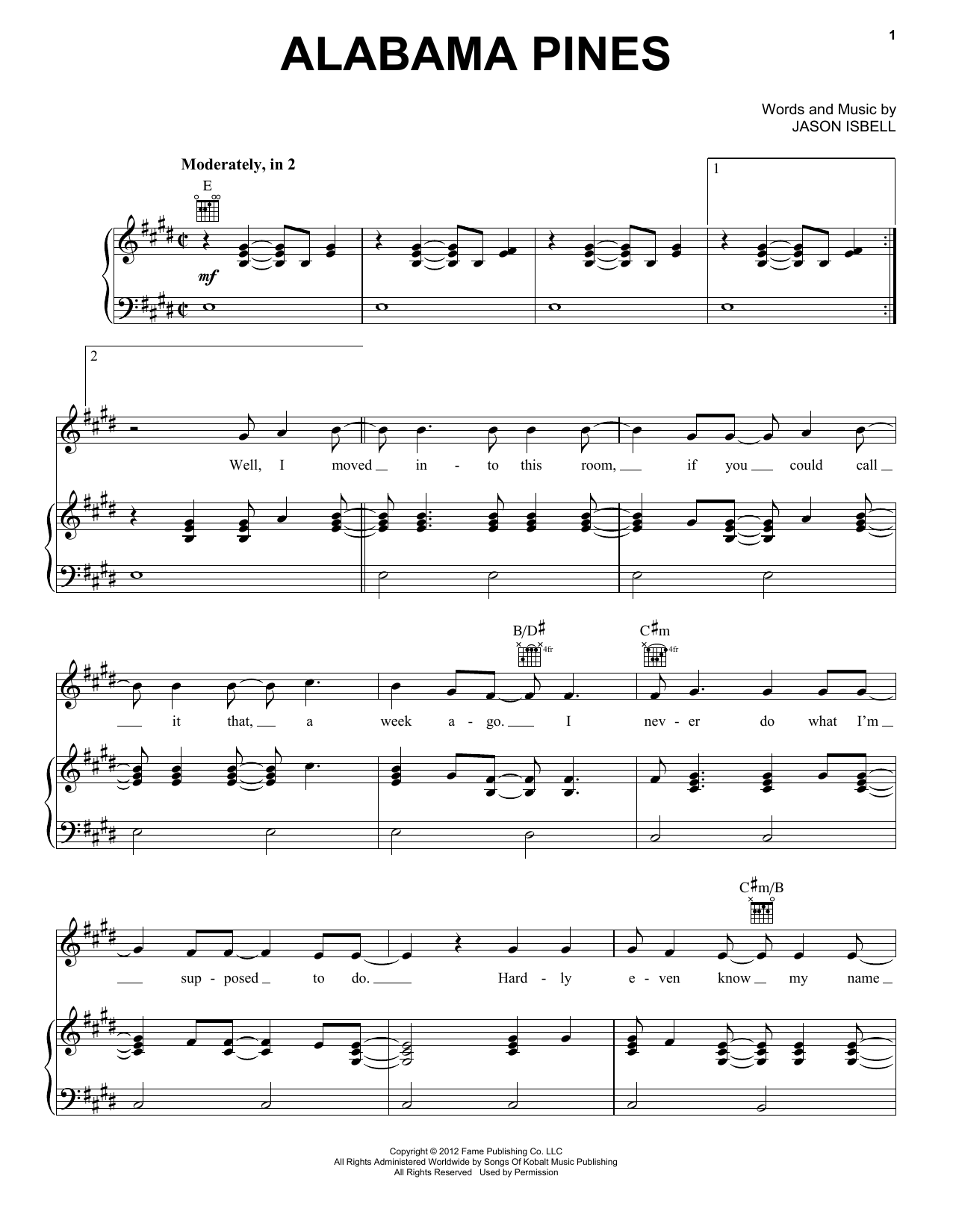 Download or print Jason Isbell & The 400 Unit Alabama Pines sheet music, chords and digital score arranged for Piano, Vocal & Guitar Chords (Right-Hand Melody). This Country score includes 10 page(s).