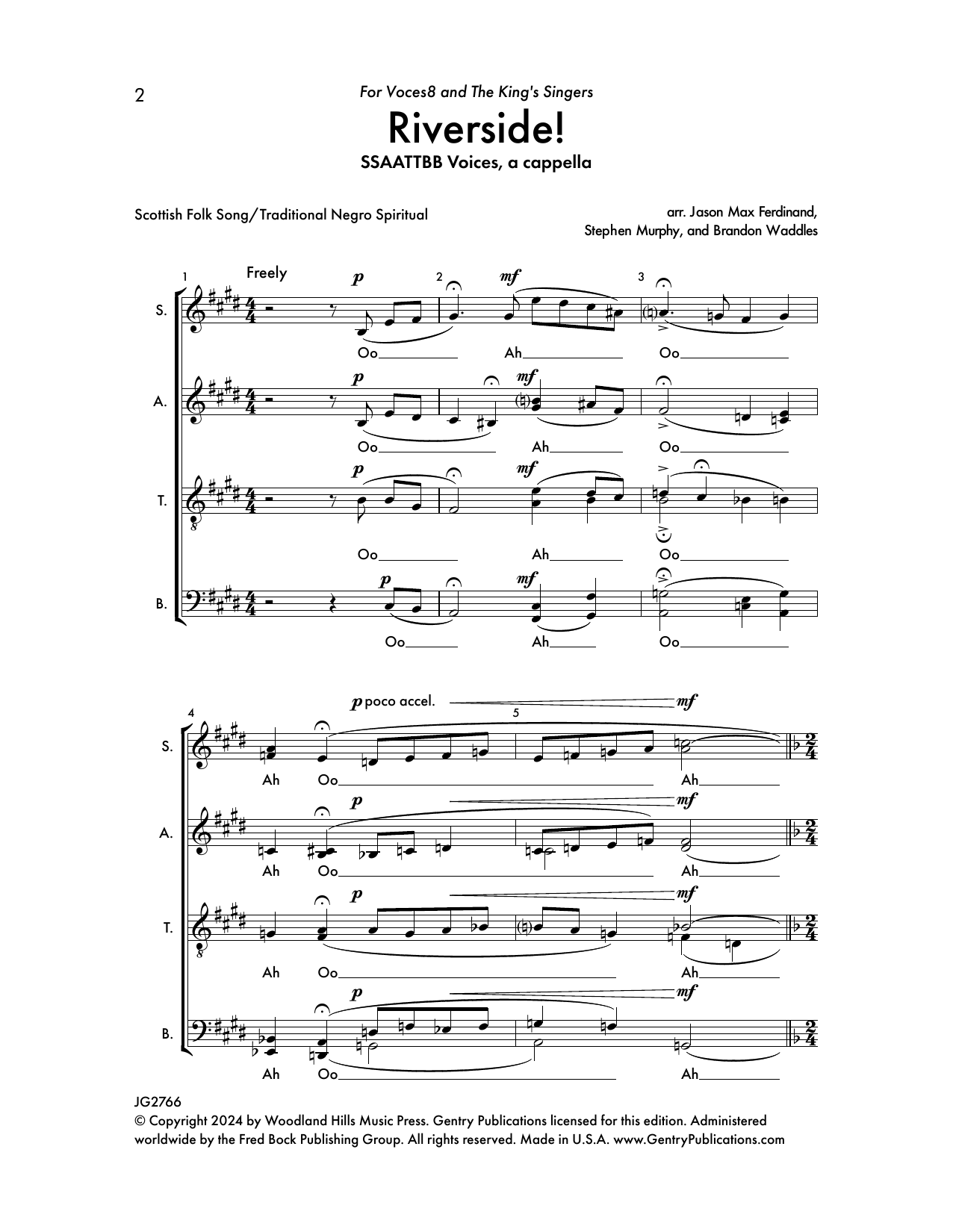 Download or print Jason Max Ferdinand, Stephen Murphy, and Brandon Waddles Riverside sheet music, chords and digital score arranged for Choir. This Concert score includes 19 page(s).