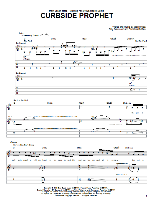 Download or print Jason Mraz Curbside Prophet sheet music, chords and digital score arranged for Guitar Tab. This Pop score includes 12 page(s).
