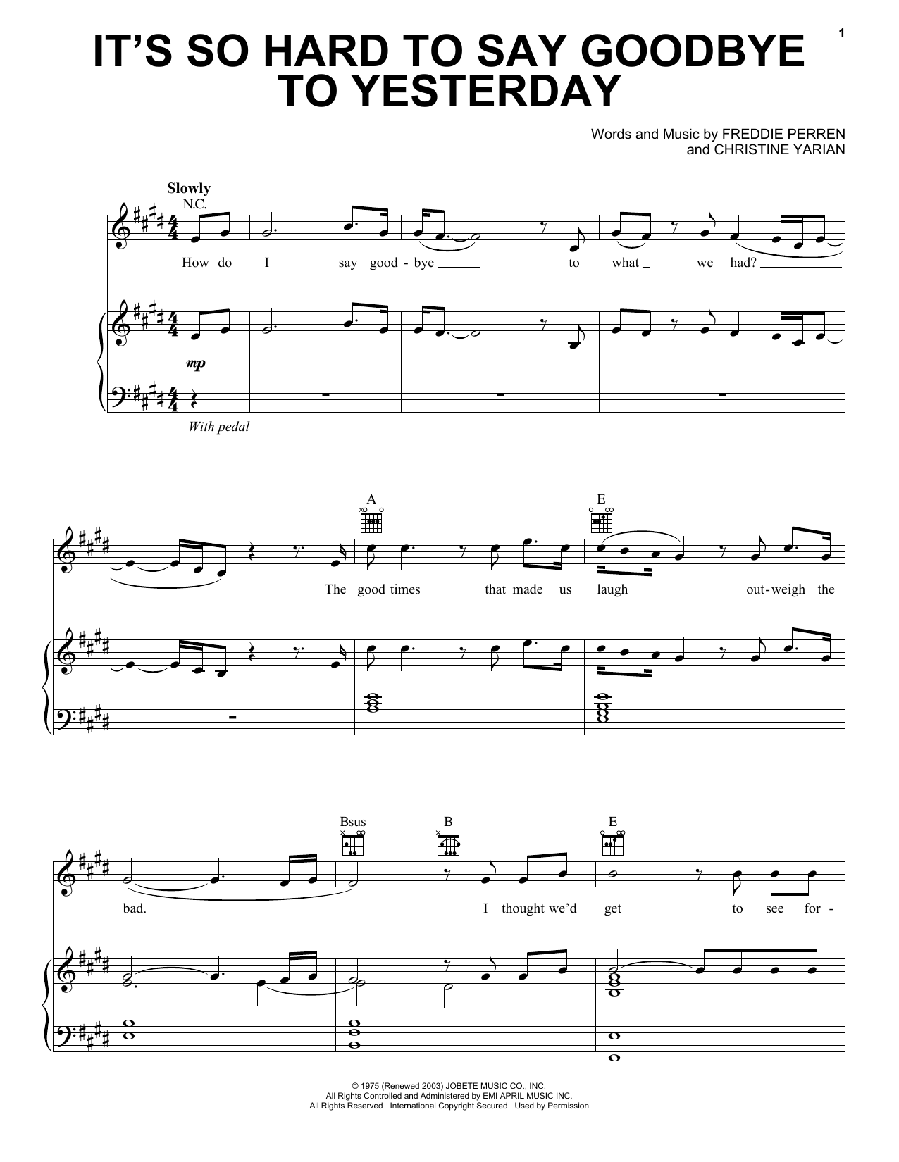 Quick facts It's So Hard To Say Goodbye To Yesterday about digital sheet music