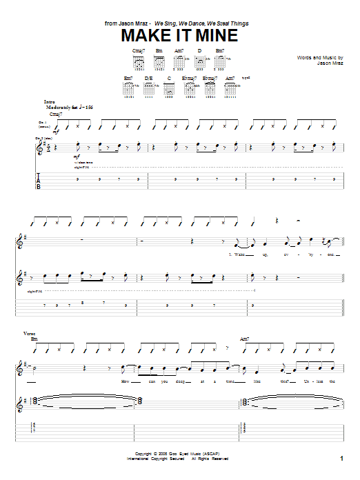 Download or print Jason Mraz Make It Mine sheet music, chords and digital score arranged for Piano, Vocal & Guitar Chords (Right-Hand Melody). This Pop score includes 8 page(s).