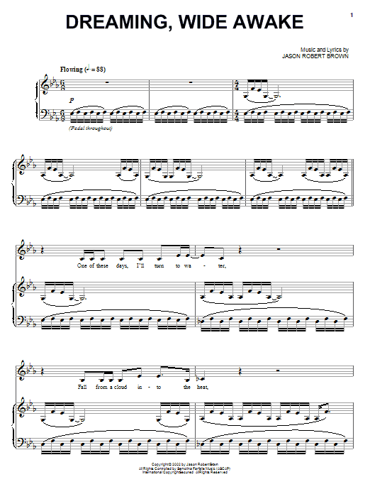 Download or print Jason Robert Brown Dreaming, Wide Awake sheet music, chords and digital score arranged for Piano & Vocal. This Pop score includes 13 page(s).
