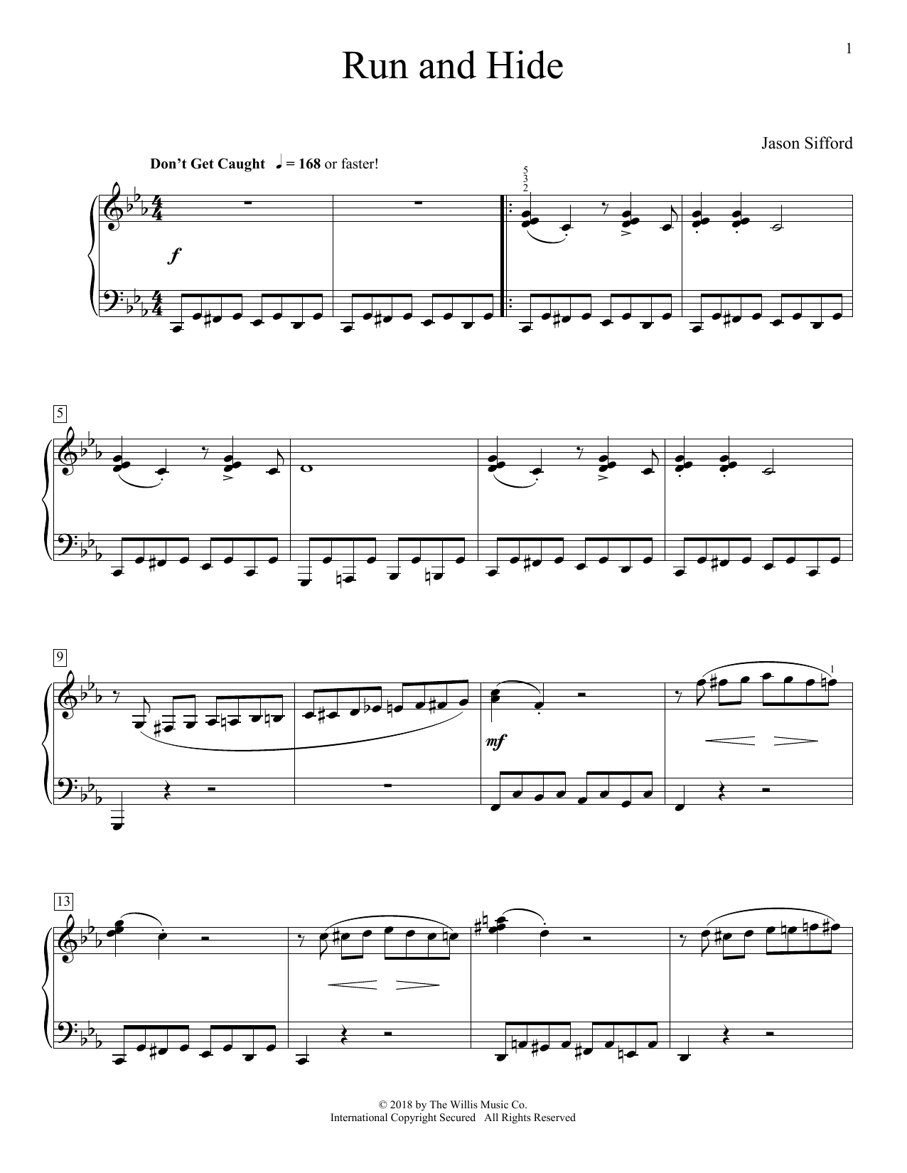 Download or print Jason Sifford Run And Hide sheet music, chords and digital score arranged for Educational Piano. This Classical score includes 3 page(s).