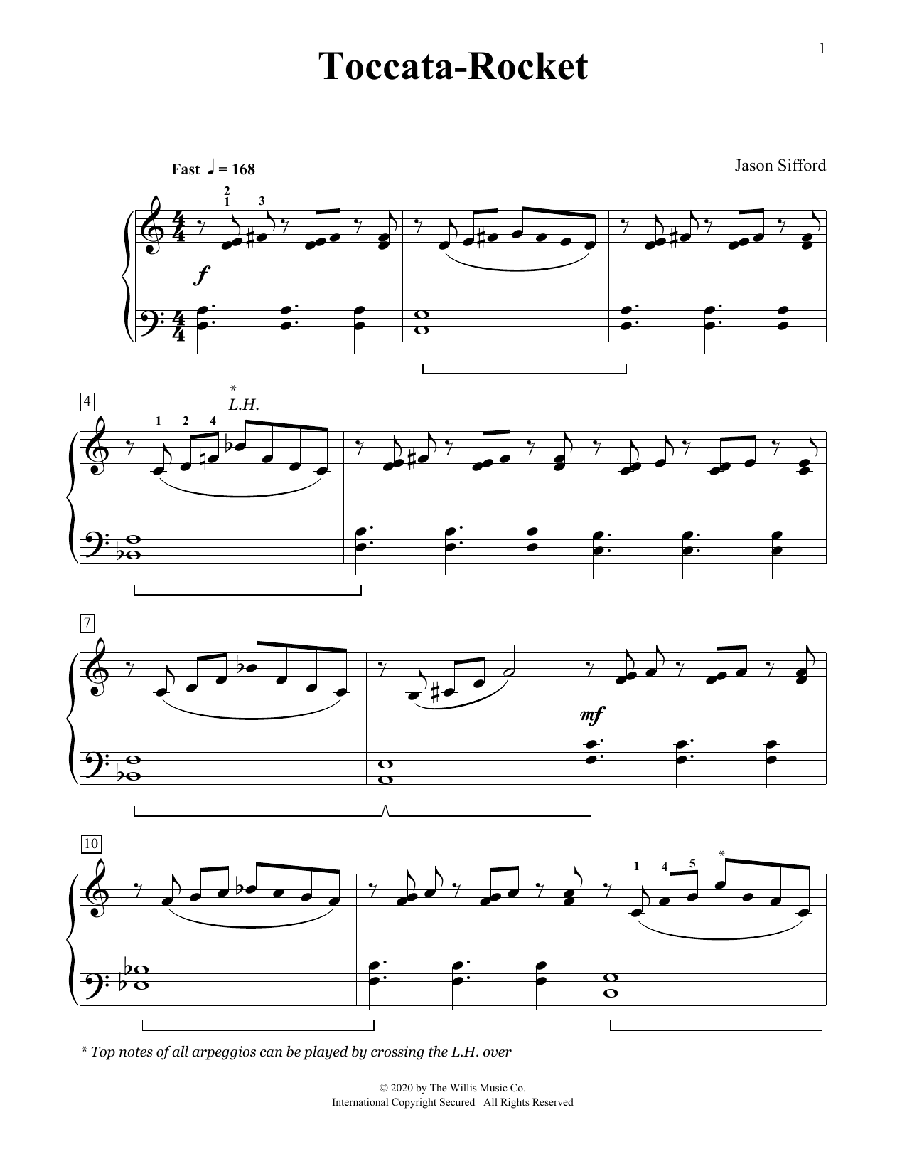 Download or print Jason Sifford Toccata-Rocket sheet music, chords and digital score arranged for Educational Piano. This Concert score includes 4 page(s).