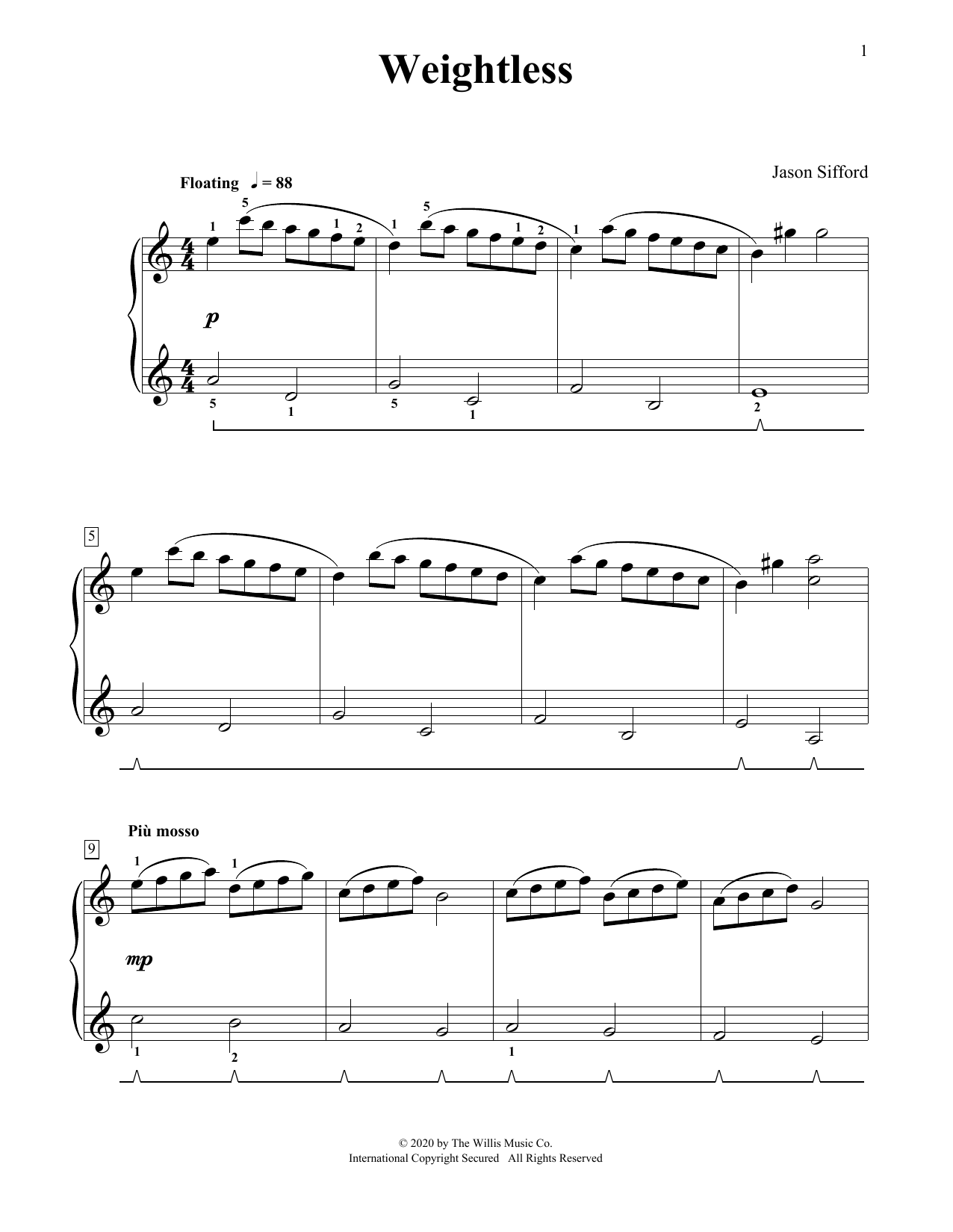 Download or print Jason Sifford Weightless sheet music, chords and digital score arranged for Educational Piano. This Concert score includes 2 page(s).