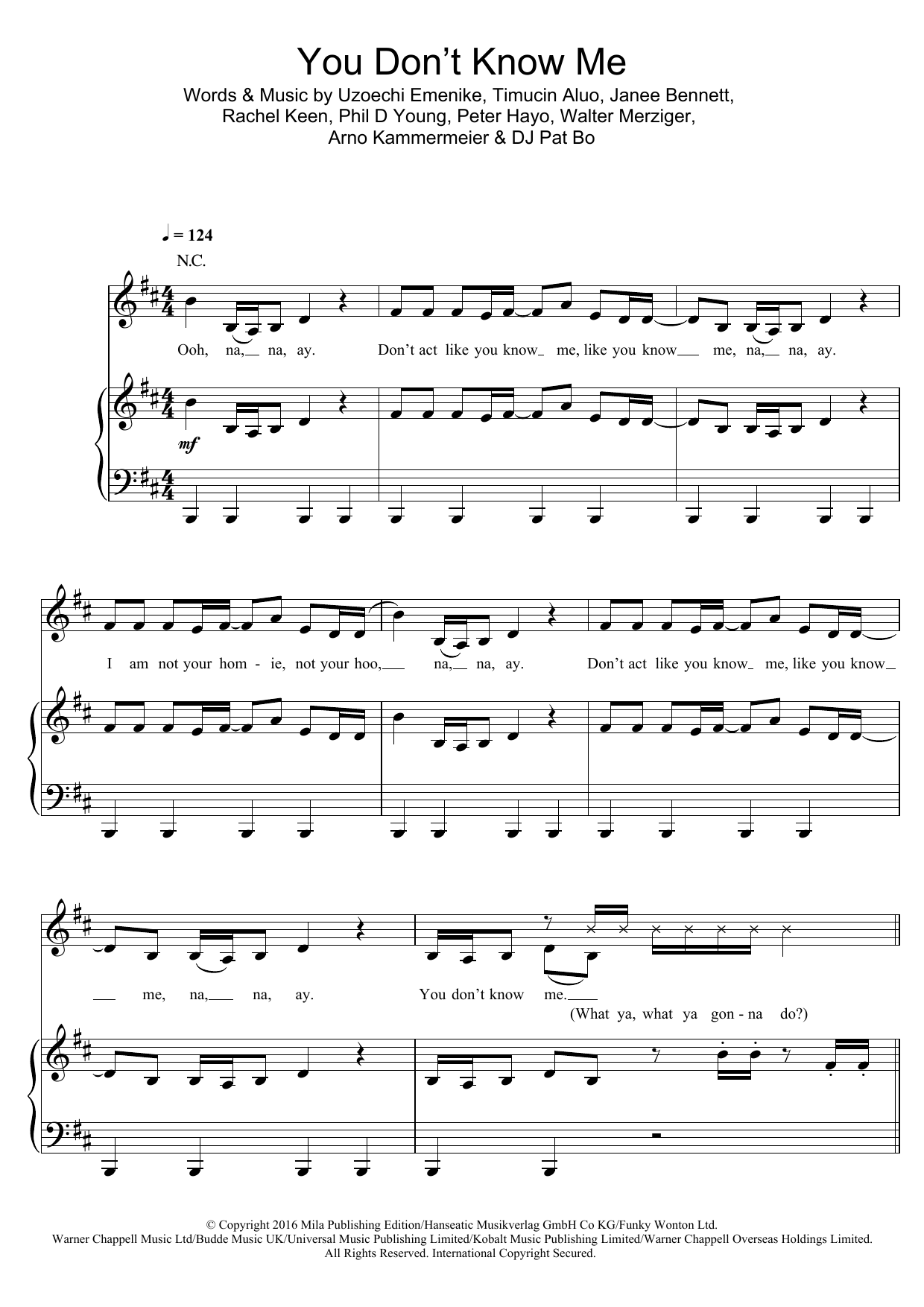 Download or print Jax Jones You Don't Know Me (featuring RAYE) sheet music, chords and digital score arranged for Piano, Vocal & Guitar Chords. This Pop score includes 8 page(s).