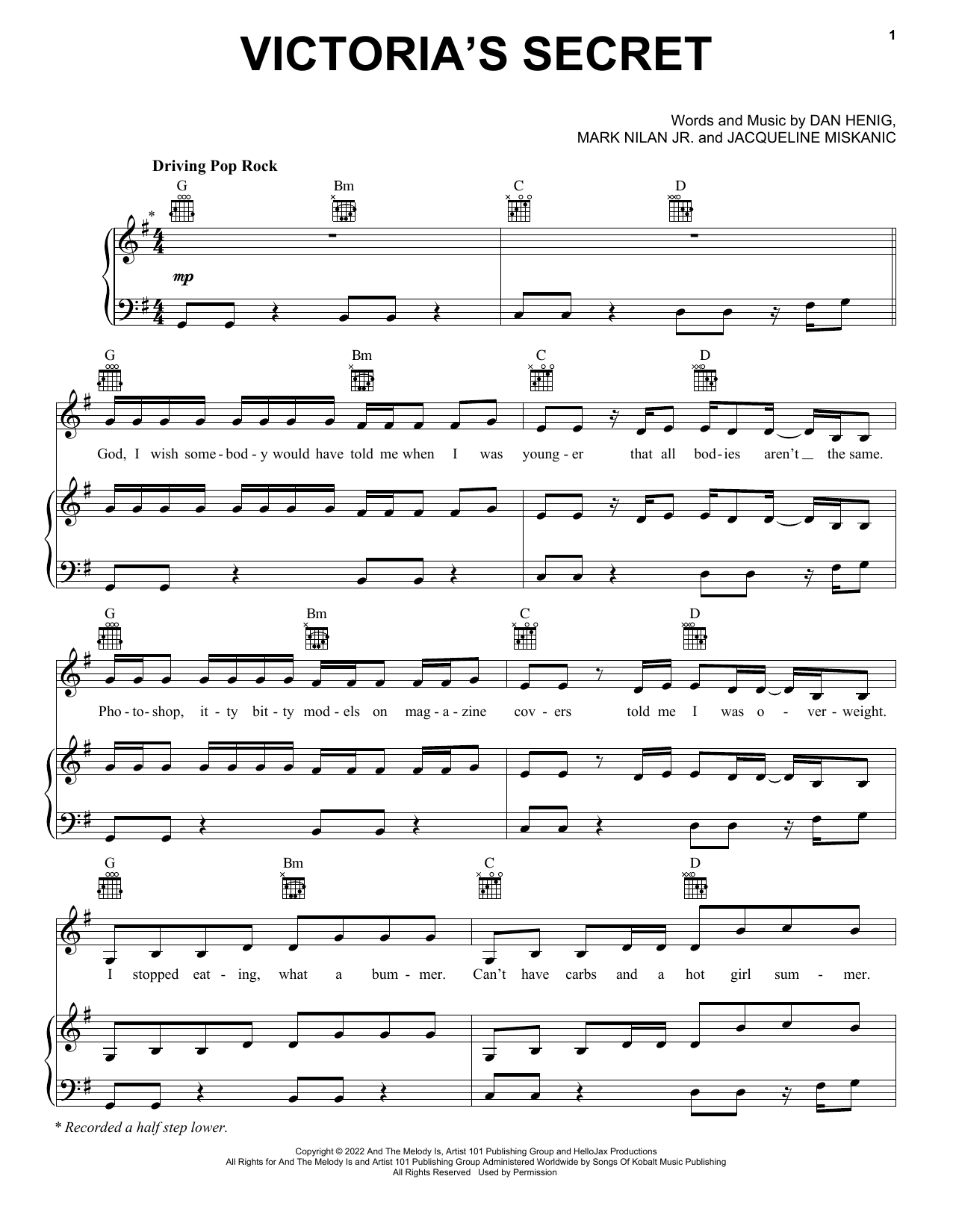 Download or print Jax Victoria's Secret sheet music, chords and digital score arranged for Piano, Vocal & Guitar Chords (Right-Hand Melody). This Pop score includes 6 page(s).