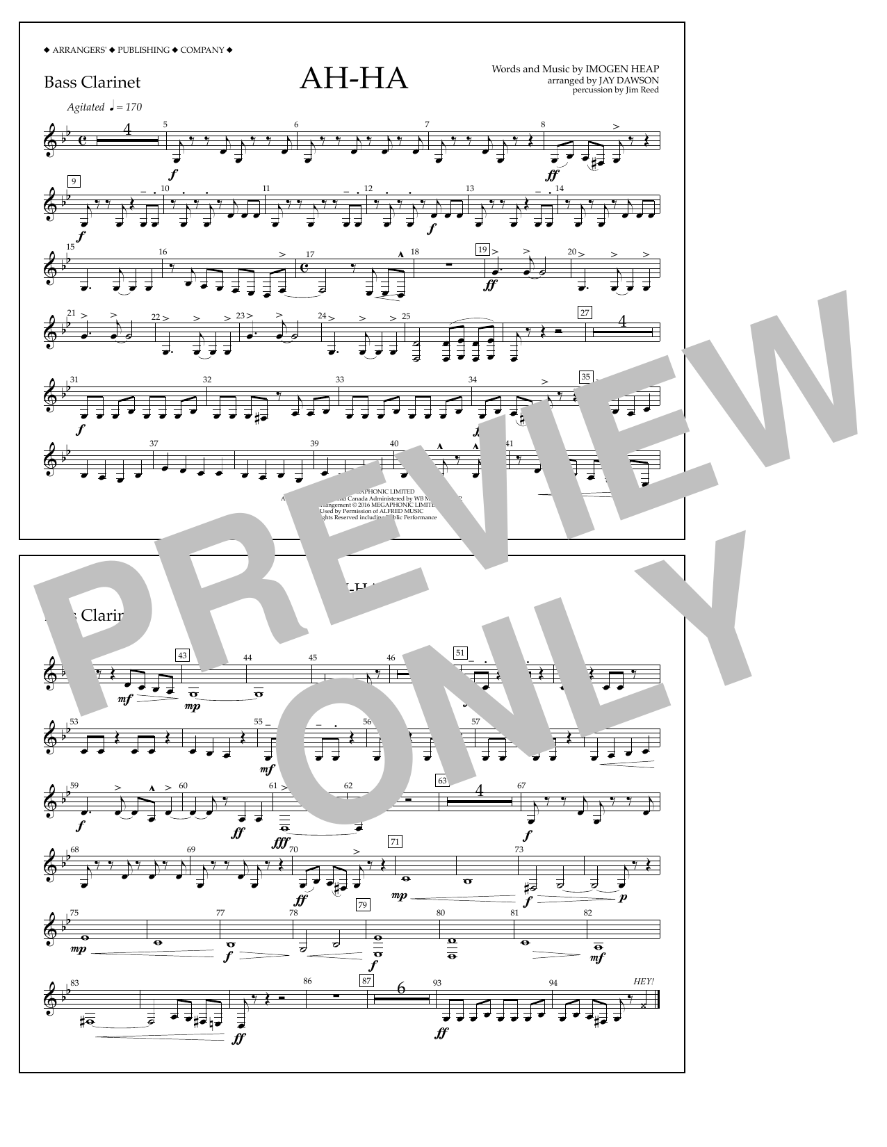 Download or print Jay Dawson Ah-ha - Bass Clarinet sheet music, chords and digital score arranged for Marching Band. This Pop score includes 1 page(s).