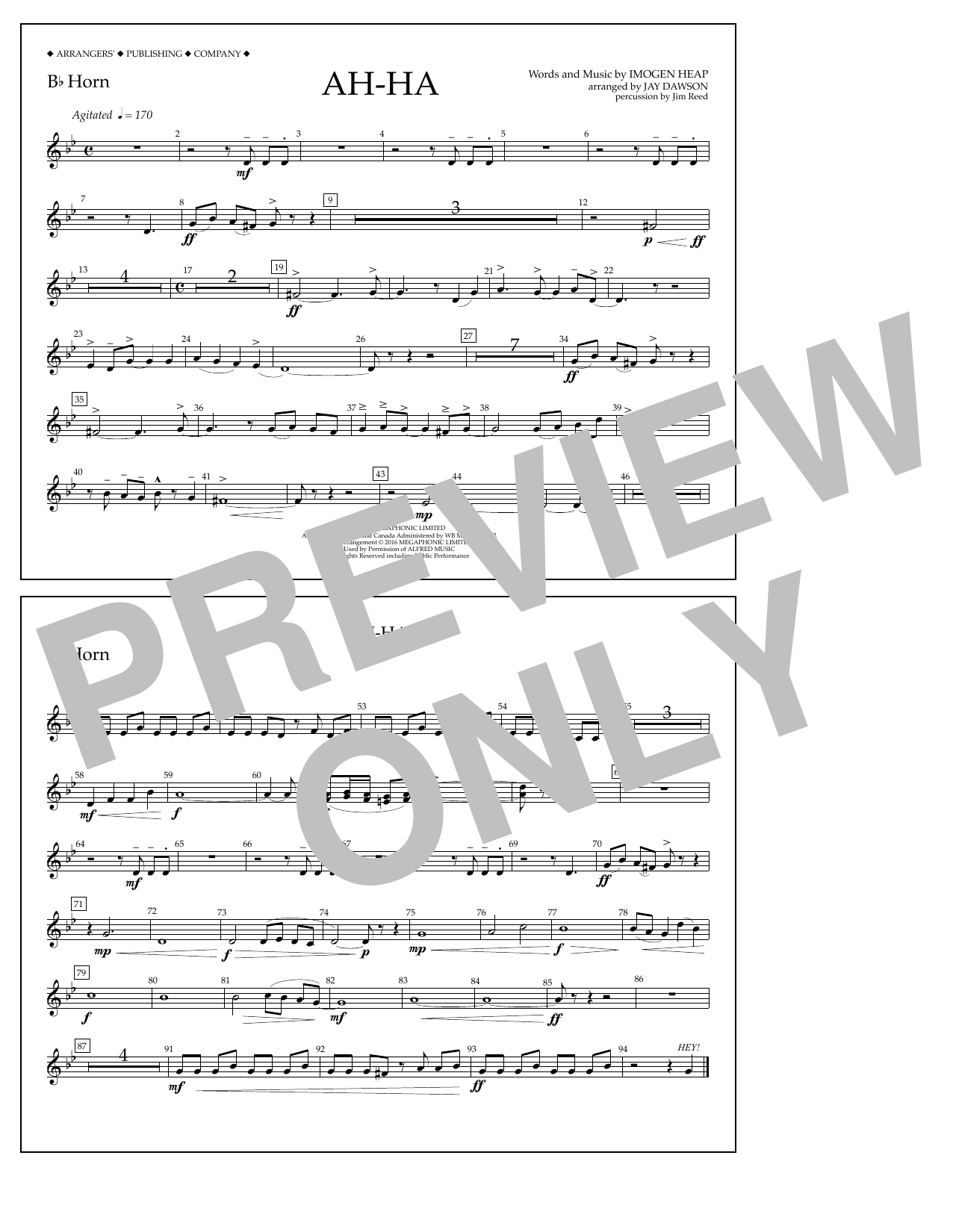 Download or print Jay Dawson Ah-ha - Bb Horn sheet music, chords and digital score arranged for Marching Band. This Pop score includes 1 page(s).
