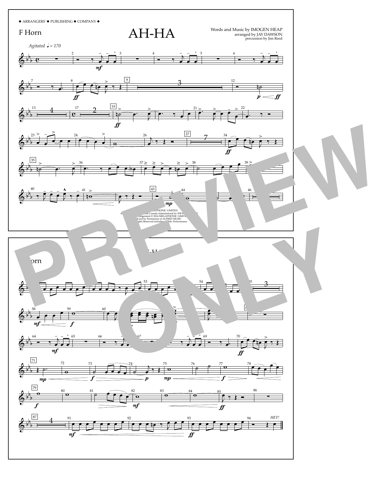 Download or print Jay Dawson Ah-ha - F Horn sheet music, chords and digital score arranged for Marching Band. This Pop score includes 1 page(s).