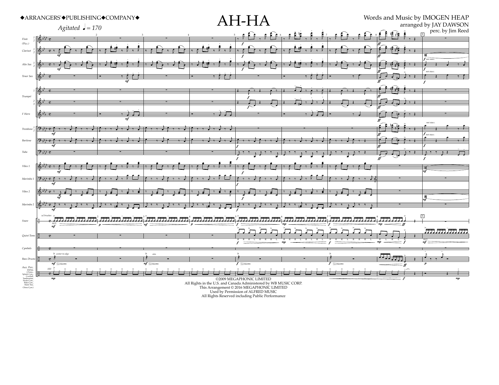 Download or print Jay Dawson Ah-ha - Full Score sheet music, chords and digital score arranged for Marching Band. This Pop score includes 10 page(s).