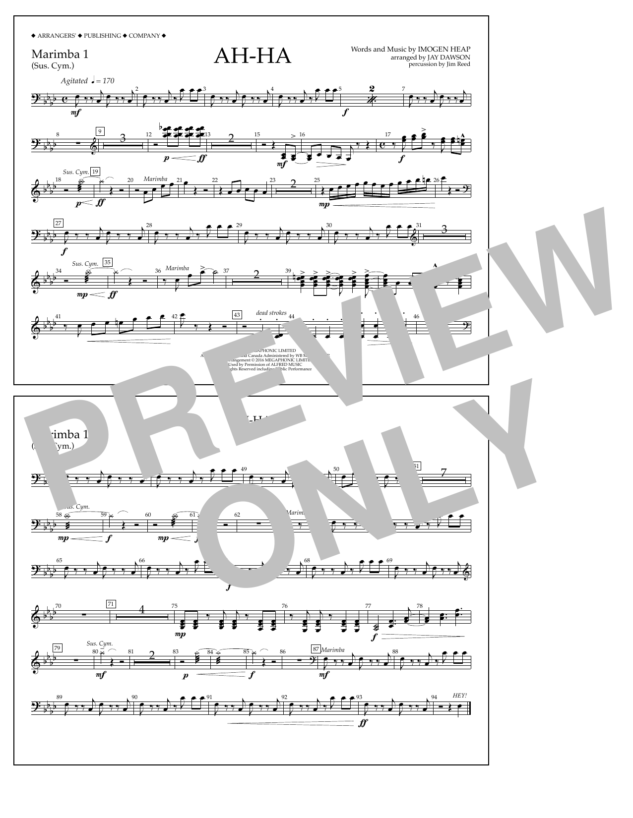 Download or print Jay Dawson Ah-ha - Marimba 1 sheet music, chords and digital score arranged for Marching Band. This Pop score includes 1 page(s).