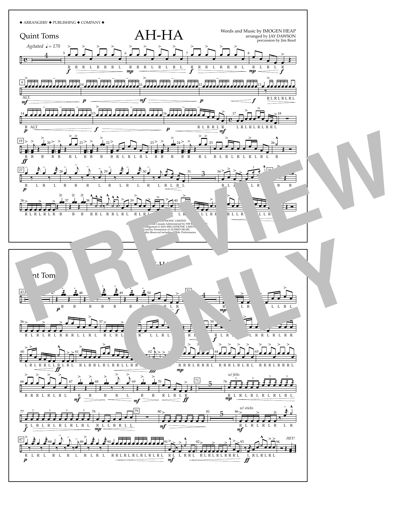 Download or print Jay Dawson Ah-ha - Quint-Toms sheet music, chords and digital score arranged for Marching Band. This Pop score includes 1 page(s).