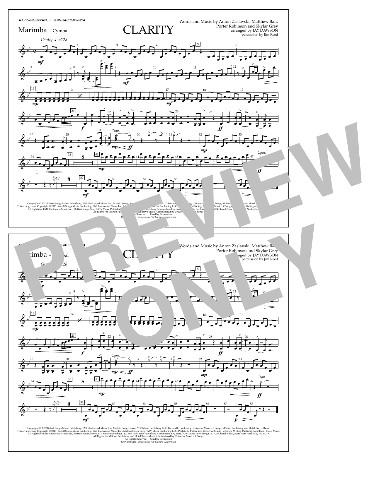 Download or print Jay Dawson Clarity - Marimba sheet music, chords and digital score arranged for Marching Band. This Pop score includes 1 page(s).