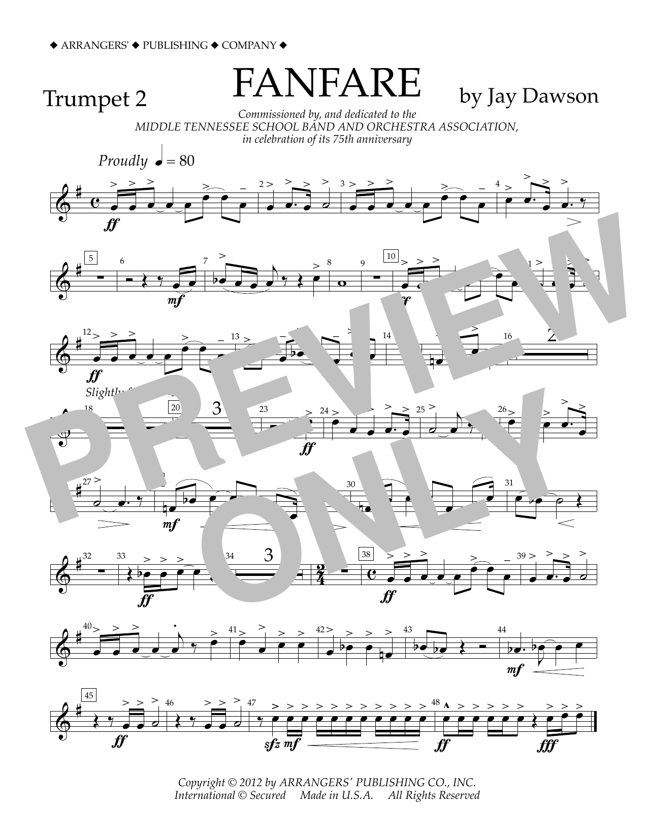 Download or print Jay Dawson Fanfare - Trumpet 2 sheet music, chords and digital score arranged for Concert Band. This Concert score includes 1 page(s).
