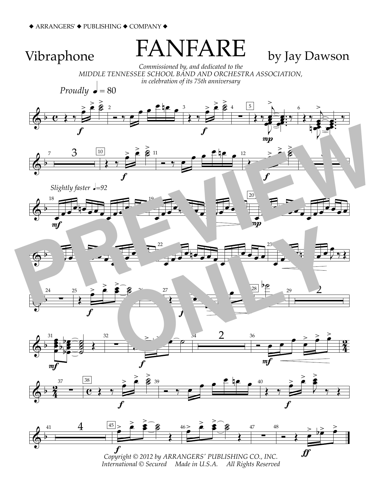 Download or print Jay Dawson Fanfare - Vibraphone sheet music, chords and digital score arranged for Concert Band. This Concert score includes 1 page(s).