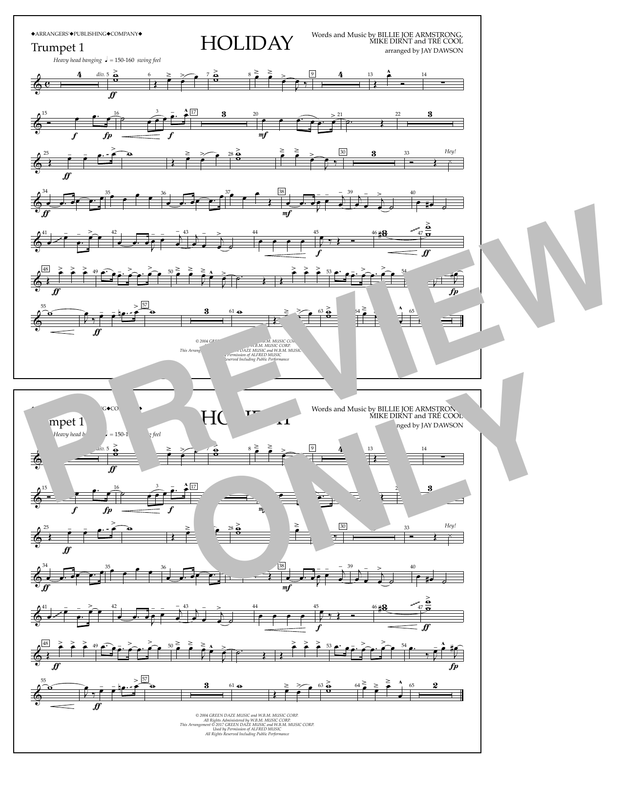 Download or print Jay Dawson Holiday - Bb Trumpet 1 sheet music, chords and digital score arranged for Marching Band. This Pop score includes 1 page(s).