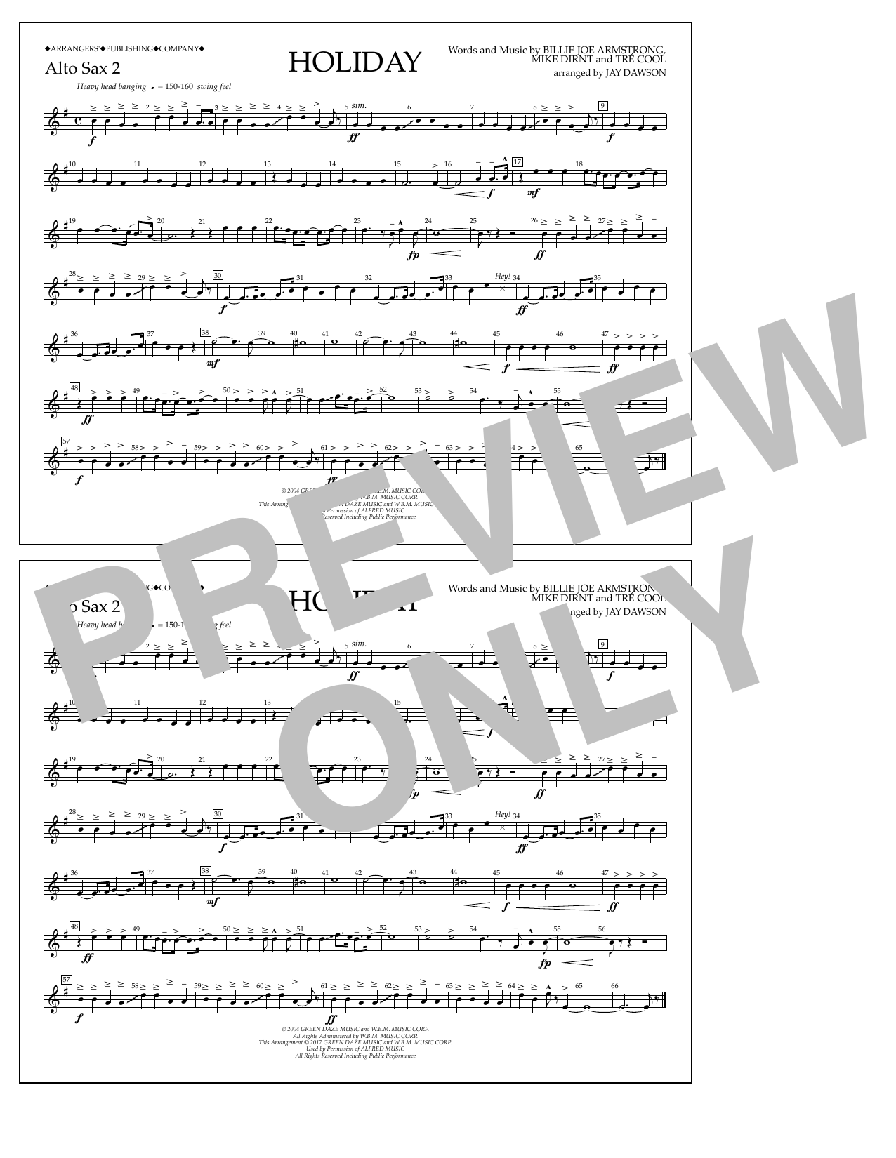Download or print Jay Dawson Holiday - Eb Alto Sax 2 sheet music, chords and digital score arranged for Marching Band. This Pop score includes 1 page(s).