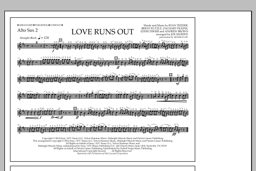 Download or print Jay Dawson Love Runs Out - Alto Sax 2 sheet music, chords and digital score arranged for Marching Band. This Pop score includes 1 page(s).
