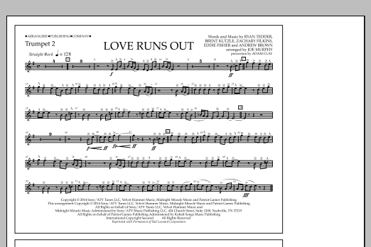 Download or print Jay Dawson Love Runs Out - Trumpet 2 sheet music, chords and digital score arranged for Marching Band. This Pop score includes 1 page(s).