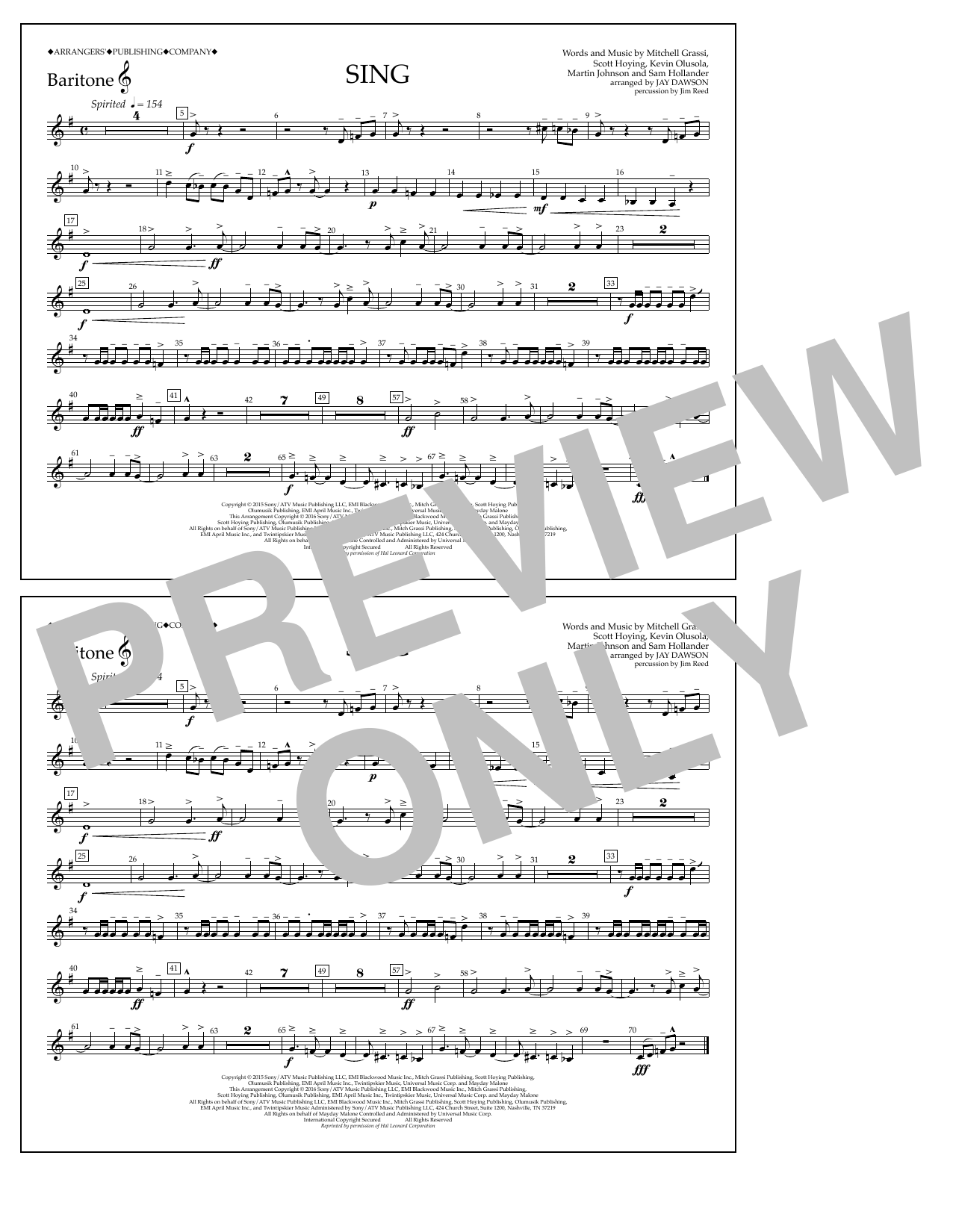 Download or print Jay Dawson Sing - Baritone T.C. sheet music, chords and digital score arranged for Marching Band. This Pop score includes 1 page(s).
