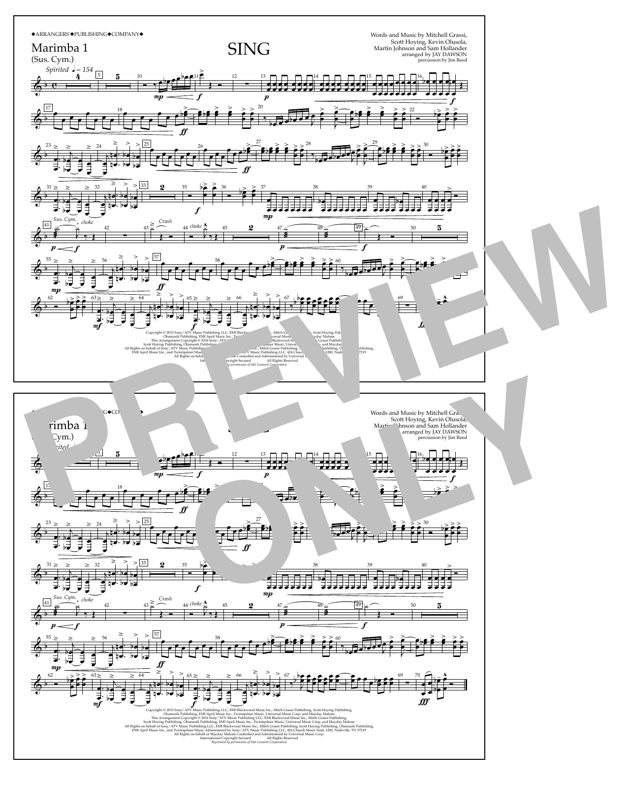 Download or print Jay Dawson Sing - Marimba 1 sheet music, chords and digital score arranged for Marching Band. This Pop score includes 1 page(s).