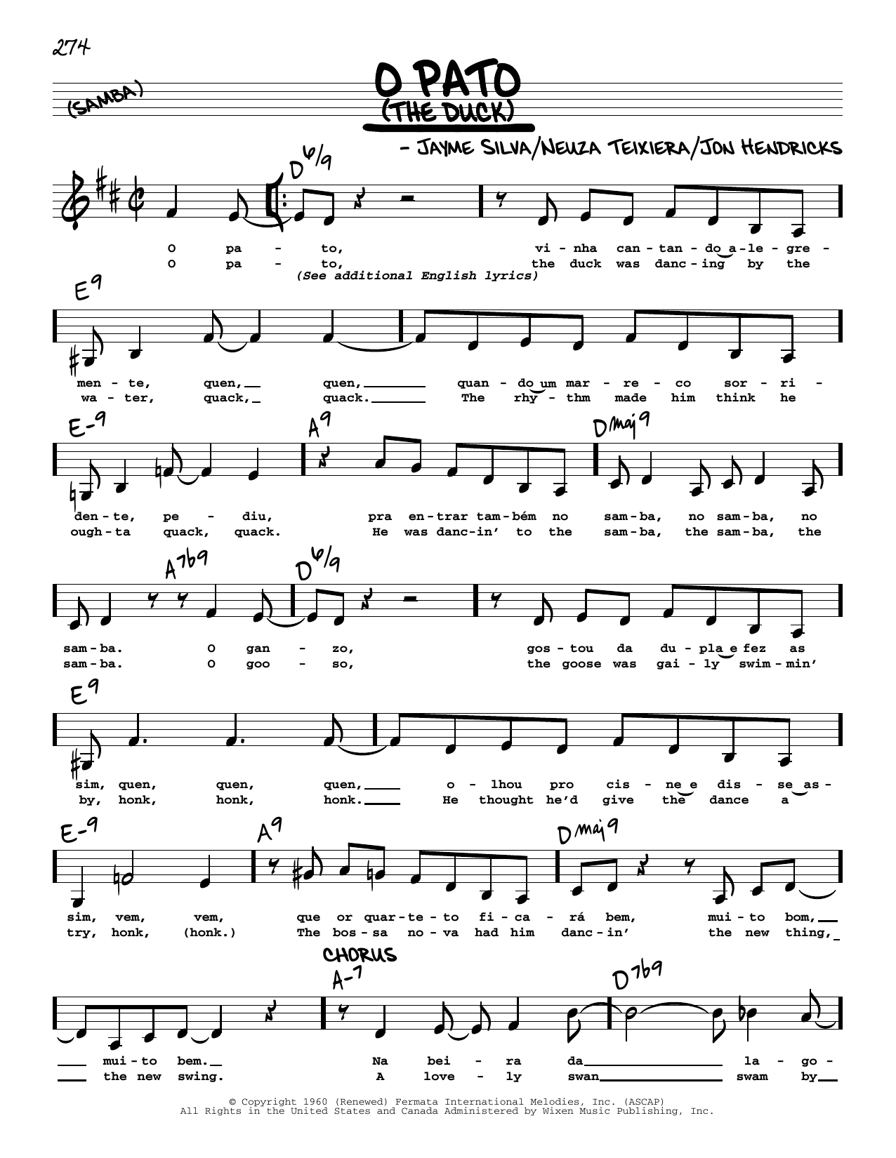 Download or print Jayme Silva O Pato (The Duck) (Low Voice) sheet music, chords and digital score arranged for Real Book – Melody, Lyrics & Chords. This Jazz score includes 2 page(s).